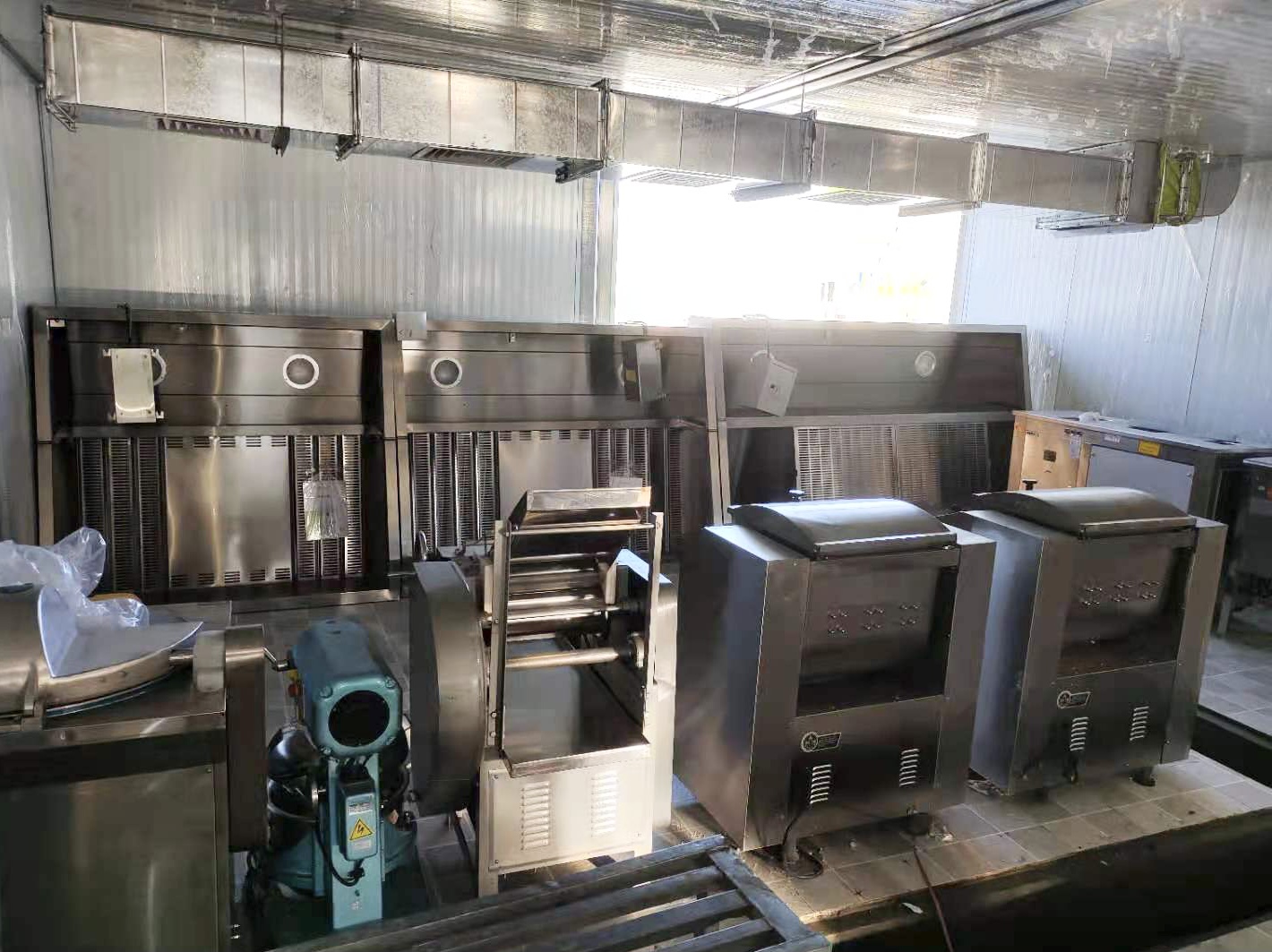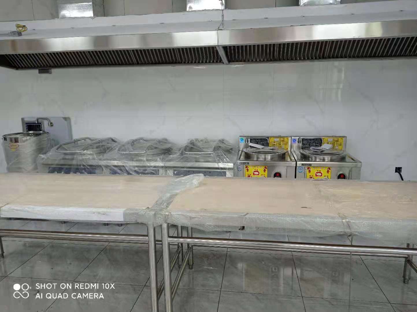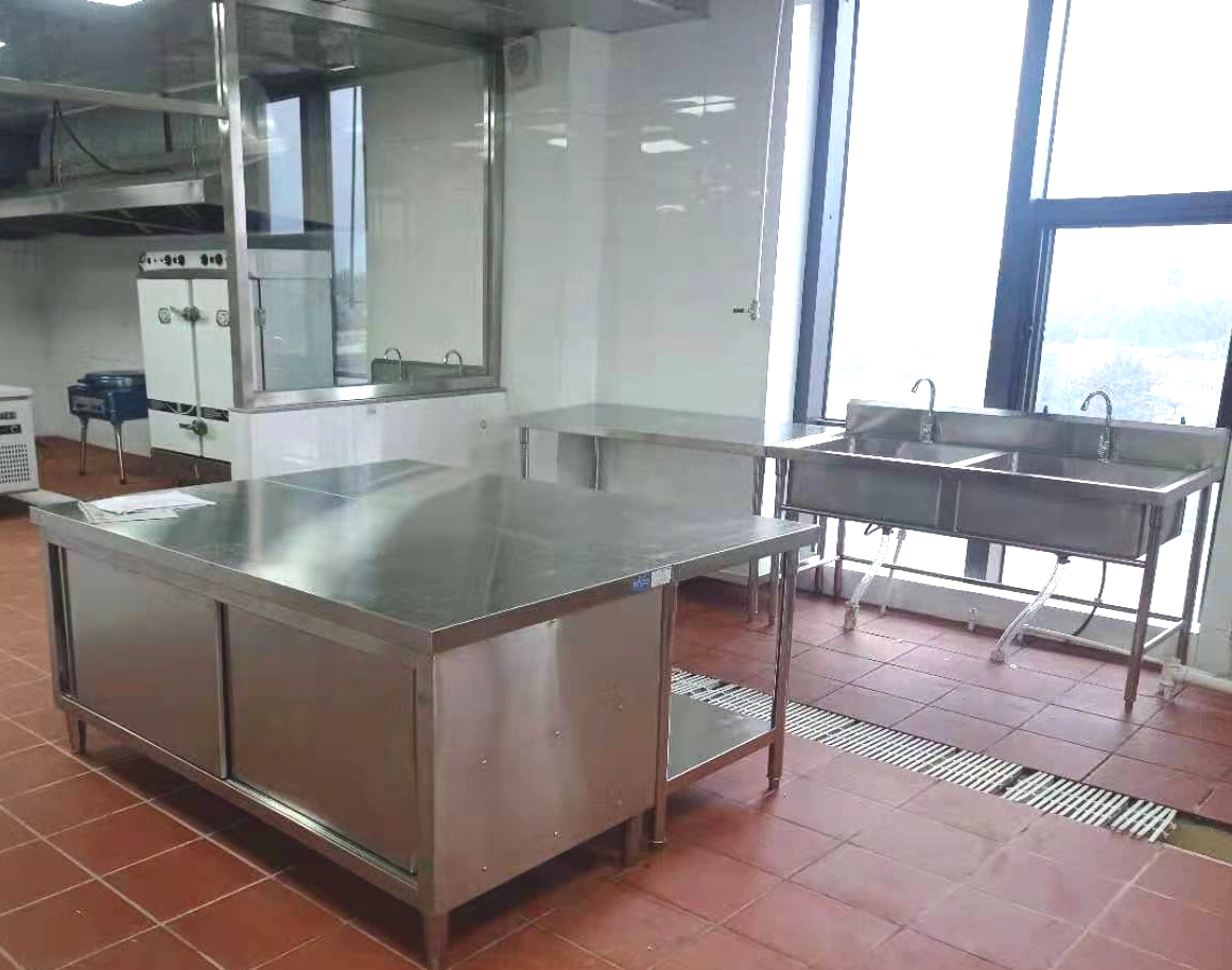 部分設備安裝完畢;異形工作臺、調料臺生產中