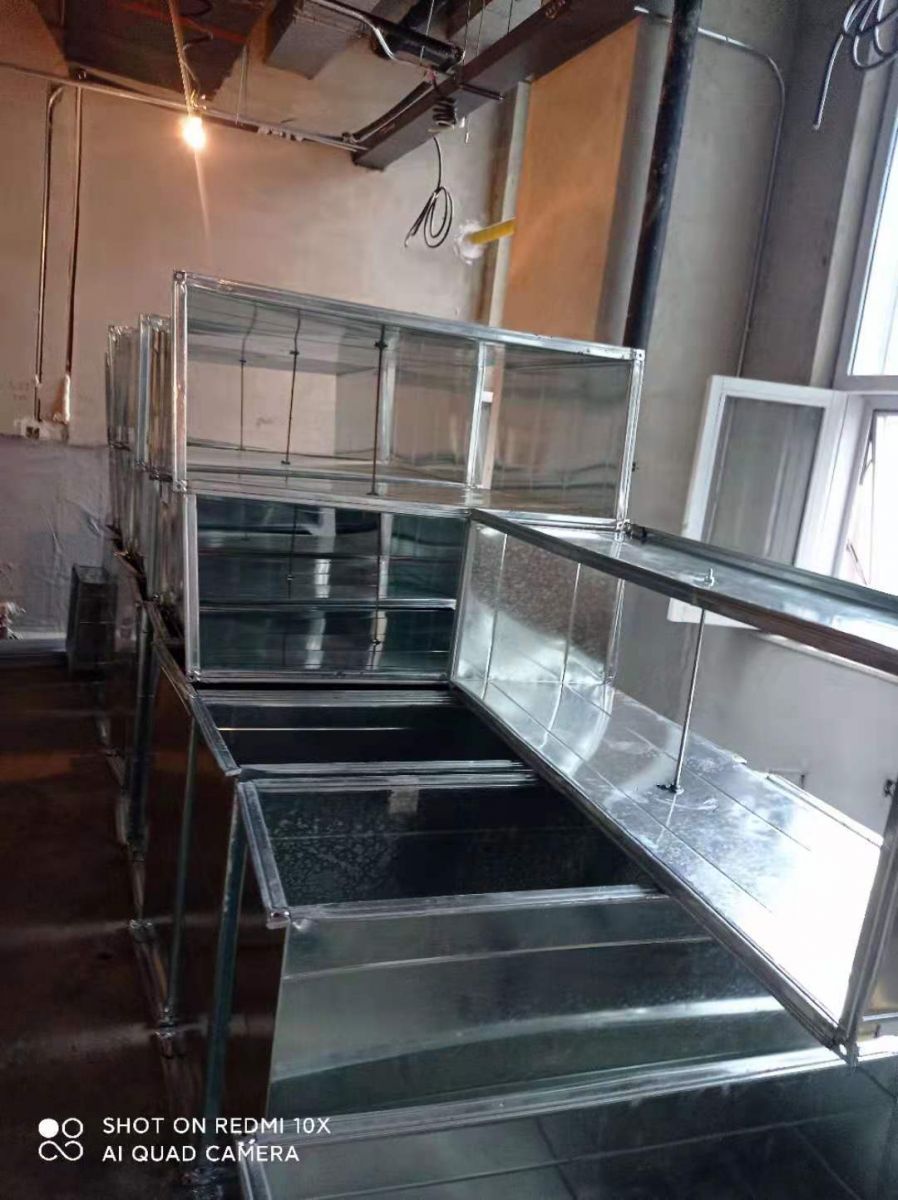二樓風機煙管安裝完畢,玻璃煙罩完成