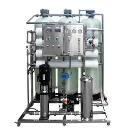 大型凈水設備利用反滲透技術,將原水經過預處理的多介質過濾器、活性碳過濾器或軟化樹脂過濾器和精密過濾器之后,再通過水泵加壓,利用孔徑為1/10000μm的反滲透膜,使較高濃度的水變為低濃度水,同時將工業污染物、重金屬、細菌、病毒等大量混入水中的雜質絕大部分隔離,可以一次性去除掉原水中98%以上的離子。從而達到飲用規定的理化指標及衛生標準,產出至清至純的水,適合用水需求大的,例如酒店、大型食堂、工廠等場所。